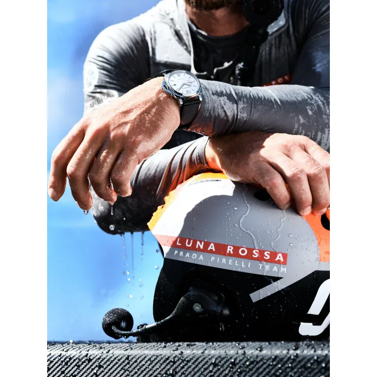 Strap: Bi-material rubber/textile Luna Rossa grey, T/T stitching, STD, 22/18, BA, PAM Click Release System™