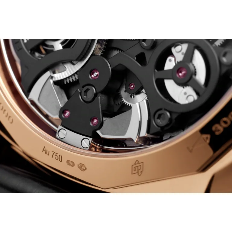 Hand-wound mechanical, P.2005/MR calibre, 16 1/4 lignes, 10,35mm thick, 59 jewels, Glucydur® balance, 28,800 vibrations/hour, Incabloc® anti-shock device. Power reserve 4 days, two barrells. 633 components