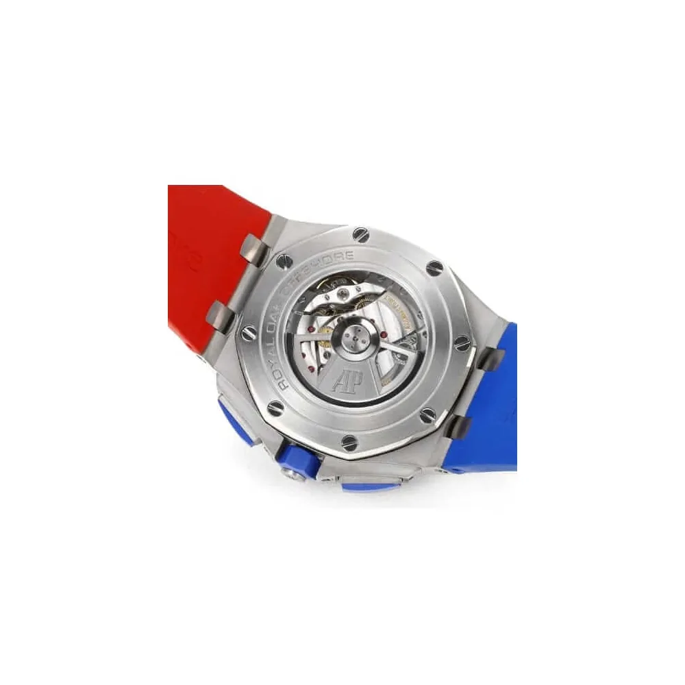 The Audemars Piguet Ryder Cup USA Replica is a marvel of watchmaking that combines Swiss precision with luxurious design. Crafted from 904L stainless steel, the robust yet elegant case and bezel offer durability, while the blue crystal dial exudes a sense of sophistication. The watch is powered by an automatic AP 3126 / 3840 movement and offers approximately 60 hours of power reserve, ensuring timekeeping is accurate to COSC certification limits.The watch’s aesthetics are complemented by its functionality, offering features such as hours, minutes, small seconds, date, and chronograph. Its rubber bracelet, adjustable to all sizes, provides a comfortable fit, while the steel buckle clasp ensures a secure grip. The watch also passed the 30m water resistance test, though swimming is not recommended. It truly mirrors the authentic watch, down to the font, punto, and finishings for writings and markings. This is the pinnacle of our 1:1 super clone Swiss mechanism watches, and comes with a full 2-year International United Luxury warranty.