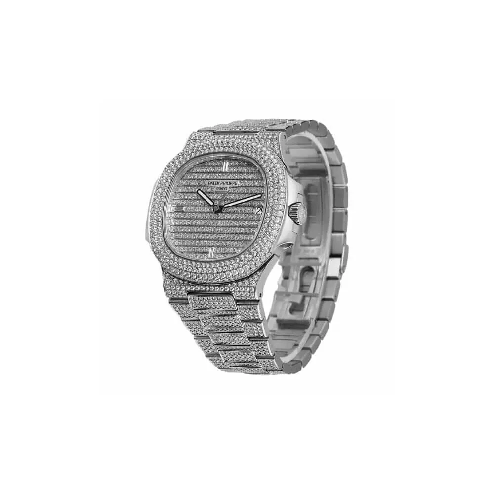 The Patek Philippe Nautilus 5719/10G-010 Replica is a high quality watch. It features a 904L stainless steel case and bezel, set with white gold and gems. The case is 40.00 mm in size and 8.50 mm thick. The movement is an automatic caliber 324 S C with a power reserve of 60 hours and a precision of (-3/+3 sec/day) within COSC certification limits. The second hand has a sweep motion.