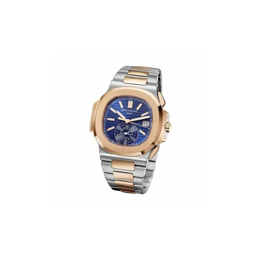 The Patek Philippe Nautilus Chronograph 5980/1AR Steel and Rose Gold Blue Dial Replica is a luxurious watch that is sure to impress. The case is made of 904L stainless steel and is transparent in color. The bezel is also made of 904L stainless steel and is rose gold in color. The crystal is sapphire and the size is 40.50 mm with a thickness of 12.20 mm. The bracelet is adjustable and is made of 904L stainless steel with a fold clasp in both rose gold and steel.