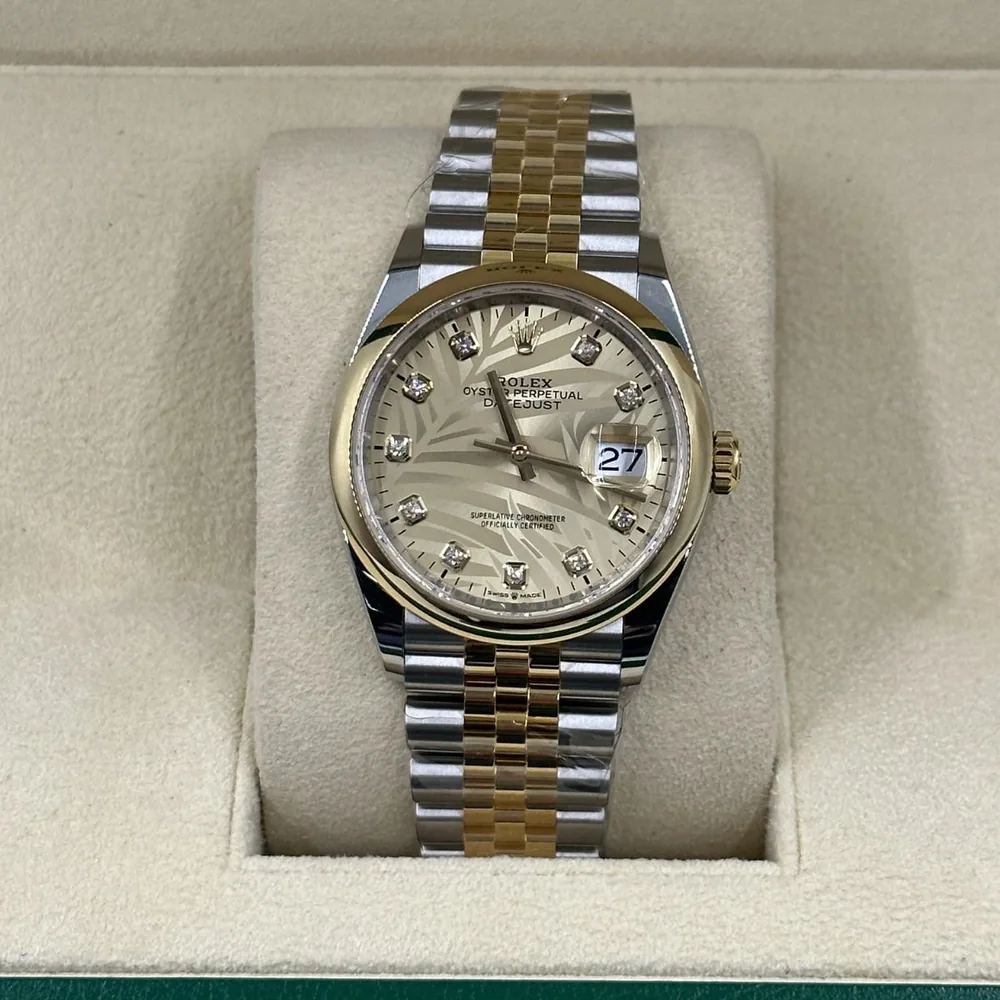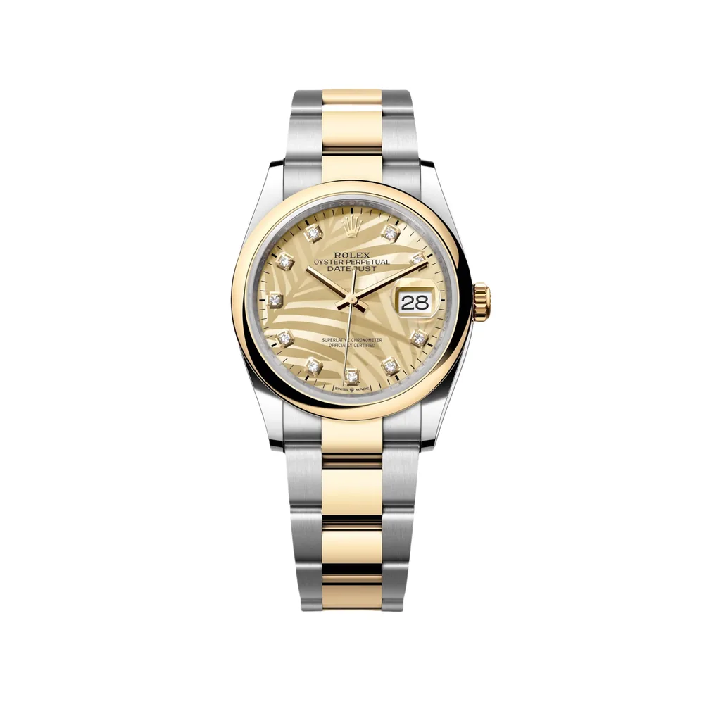 RLX Datejust 36mm 126203 Golden Palm Dial Domed Bezel Oyster Bracelet