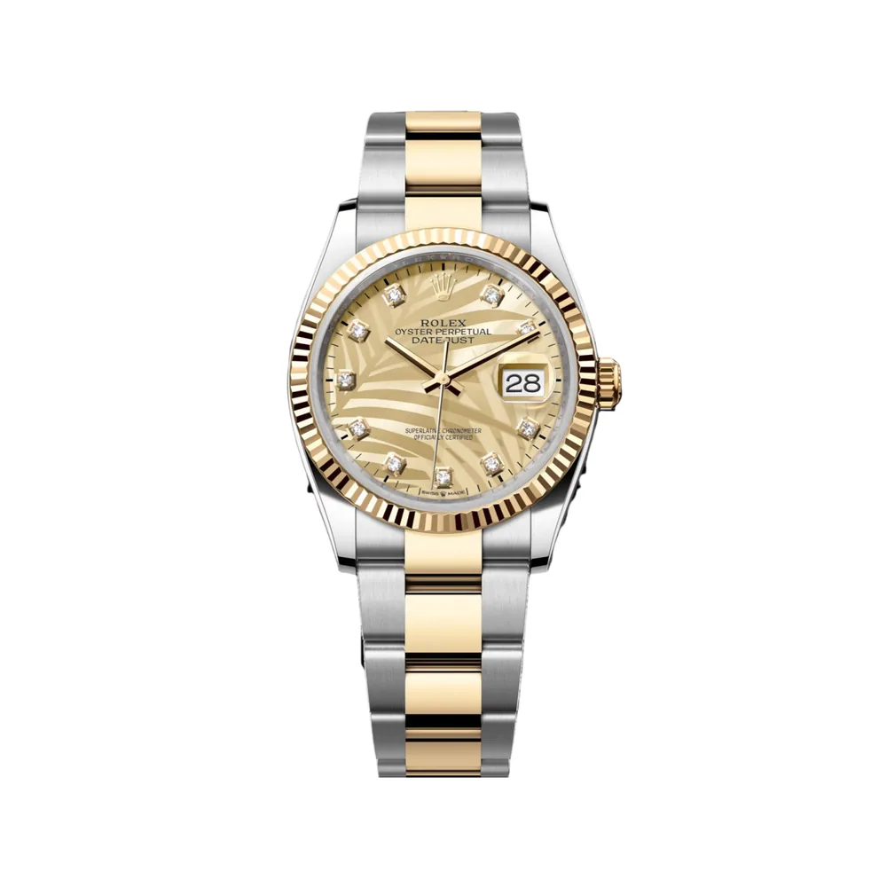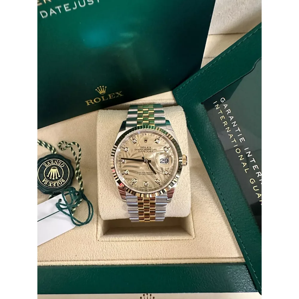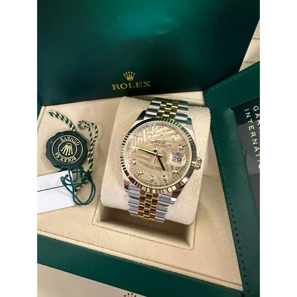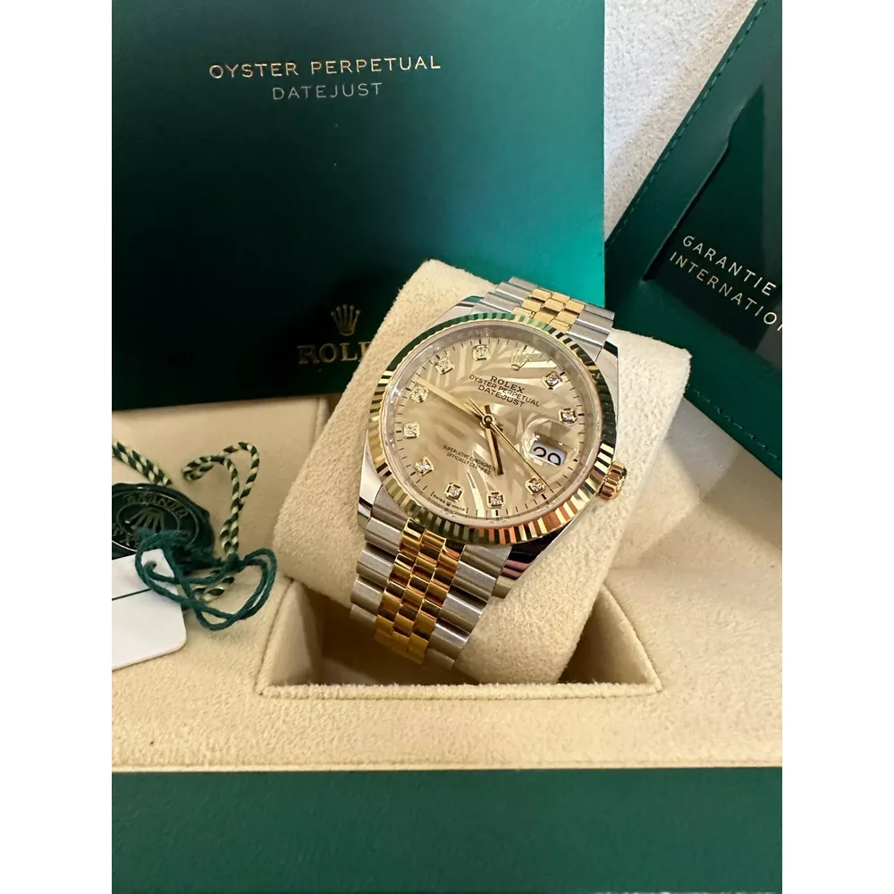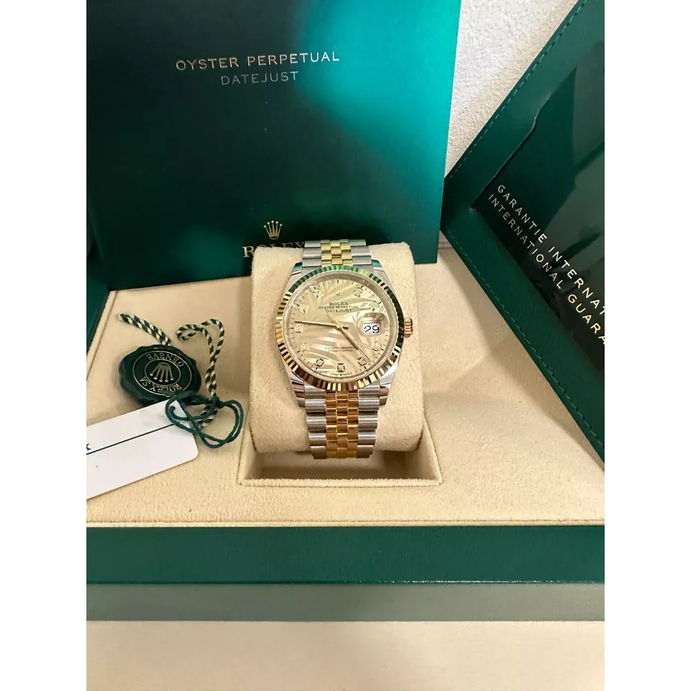 RLX Datejust 36mm 126233 Champagne Palm Motif Diamond Dial and Jubilee Bracelet Watch