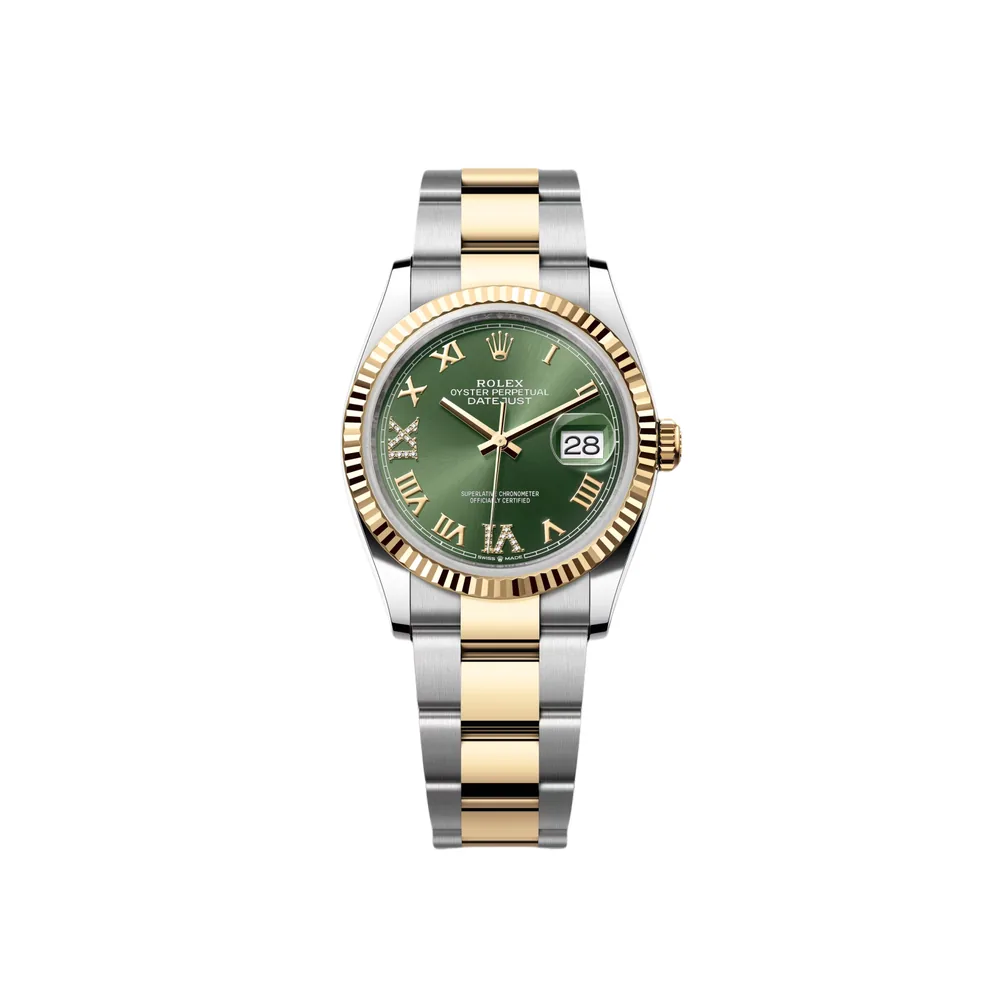 RLX Datejust 36mm 126233 Olive-green Roman Diamond Dial Two-Tone Jubilee Bracelet