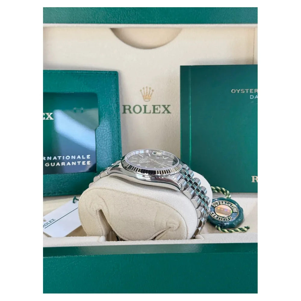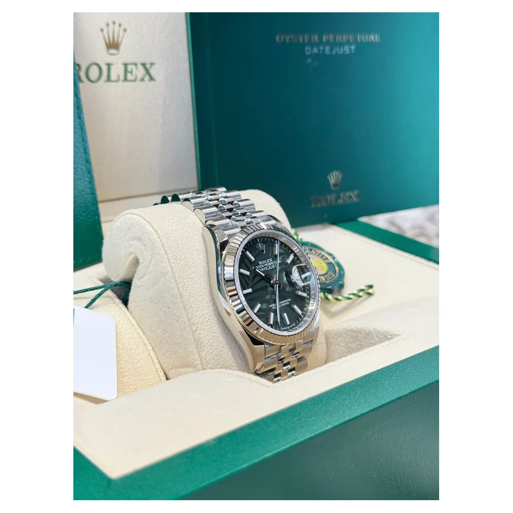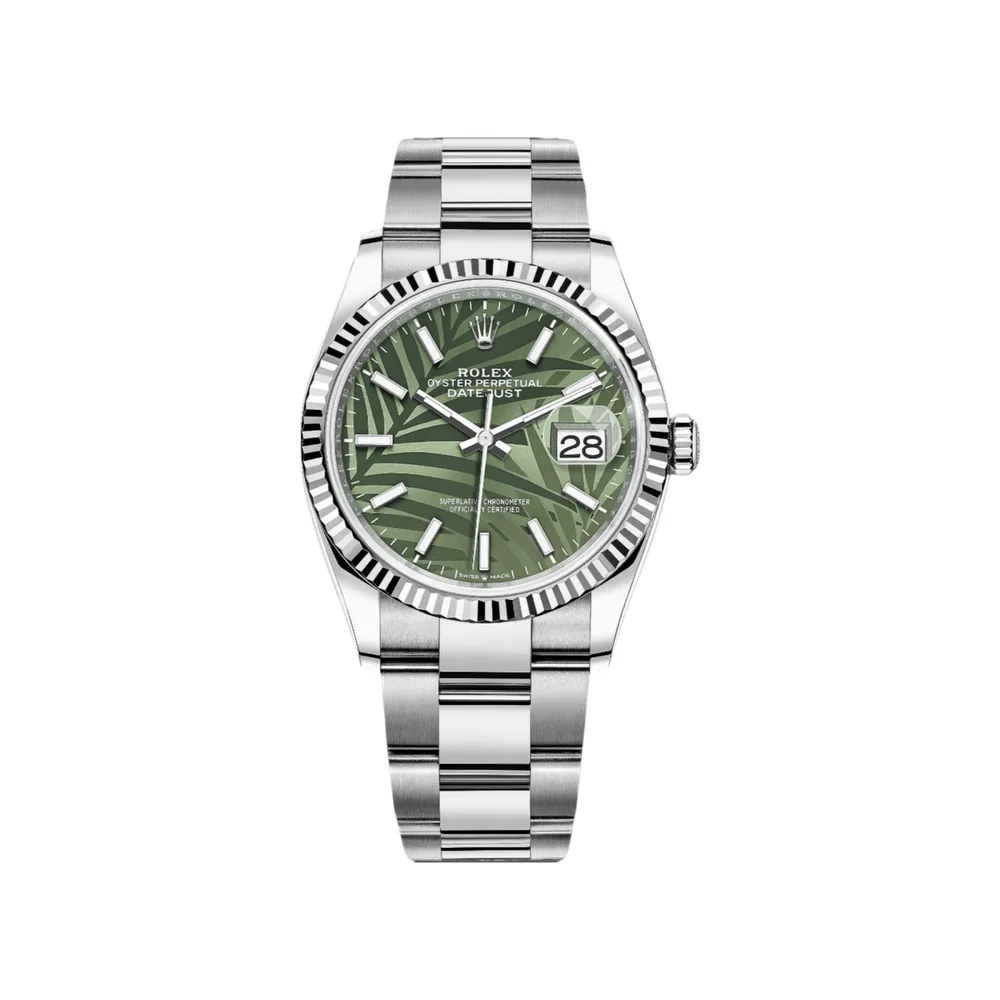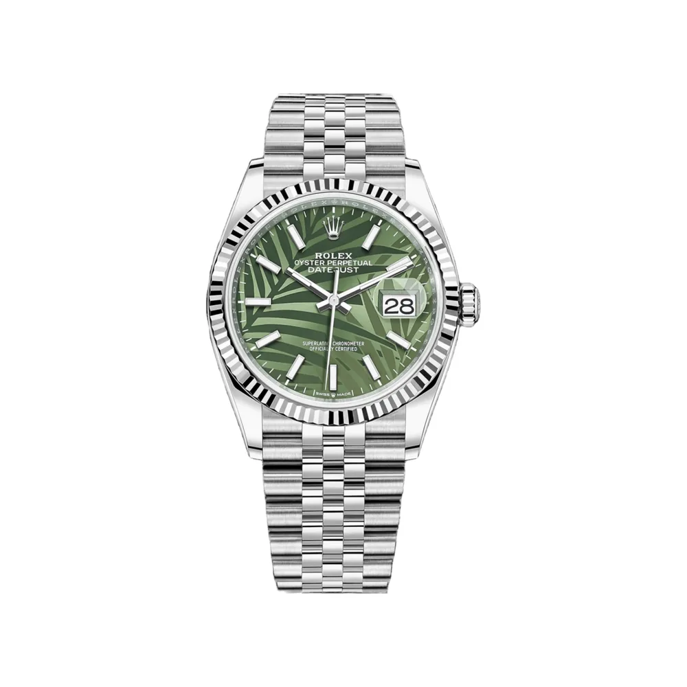 RLX Datejust 36mm 126234 Olive Green Palm Motif Dial Jubilee Stainless Steel Watch