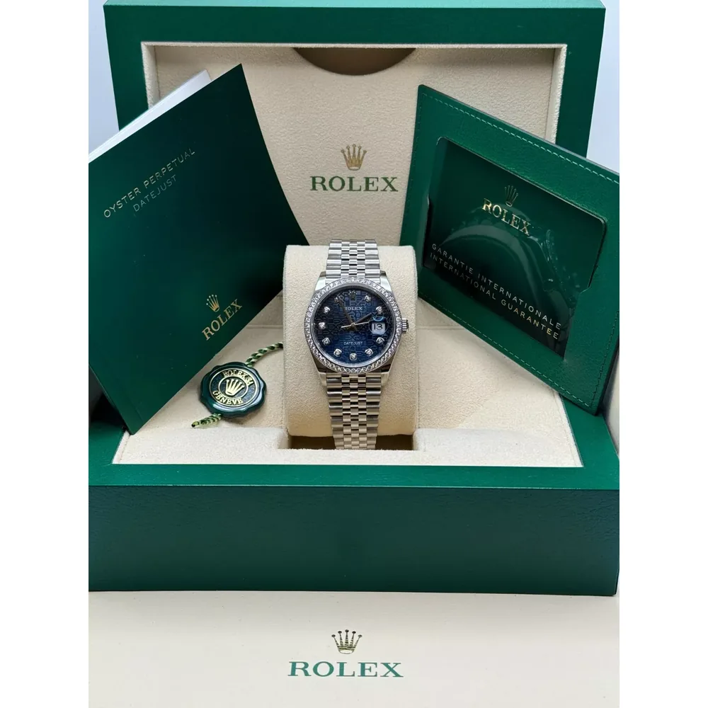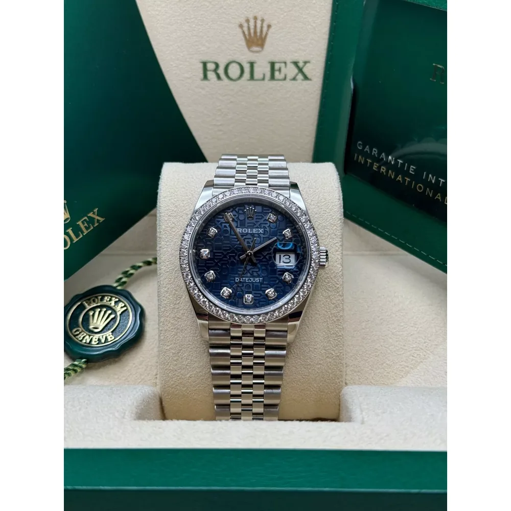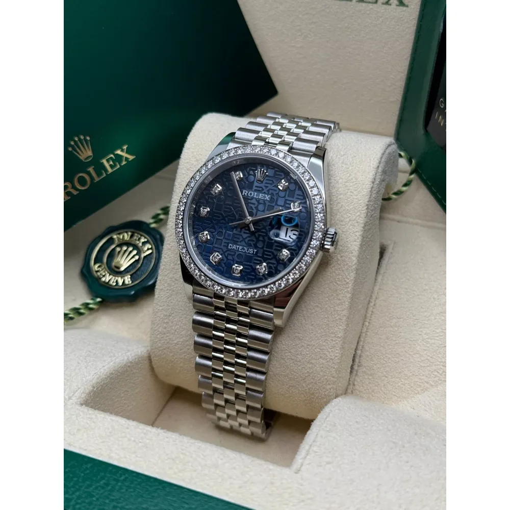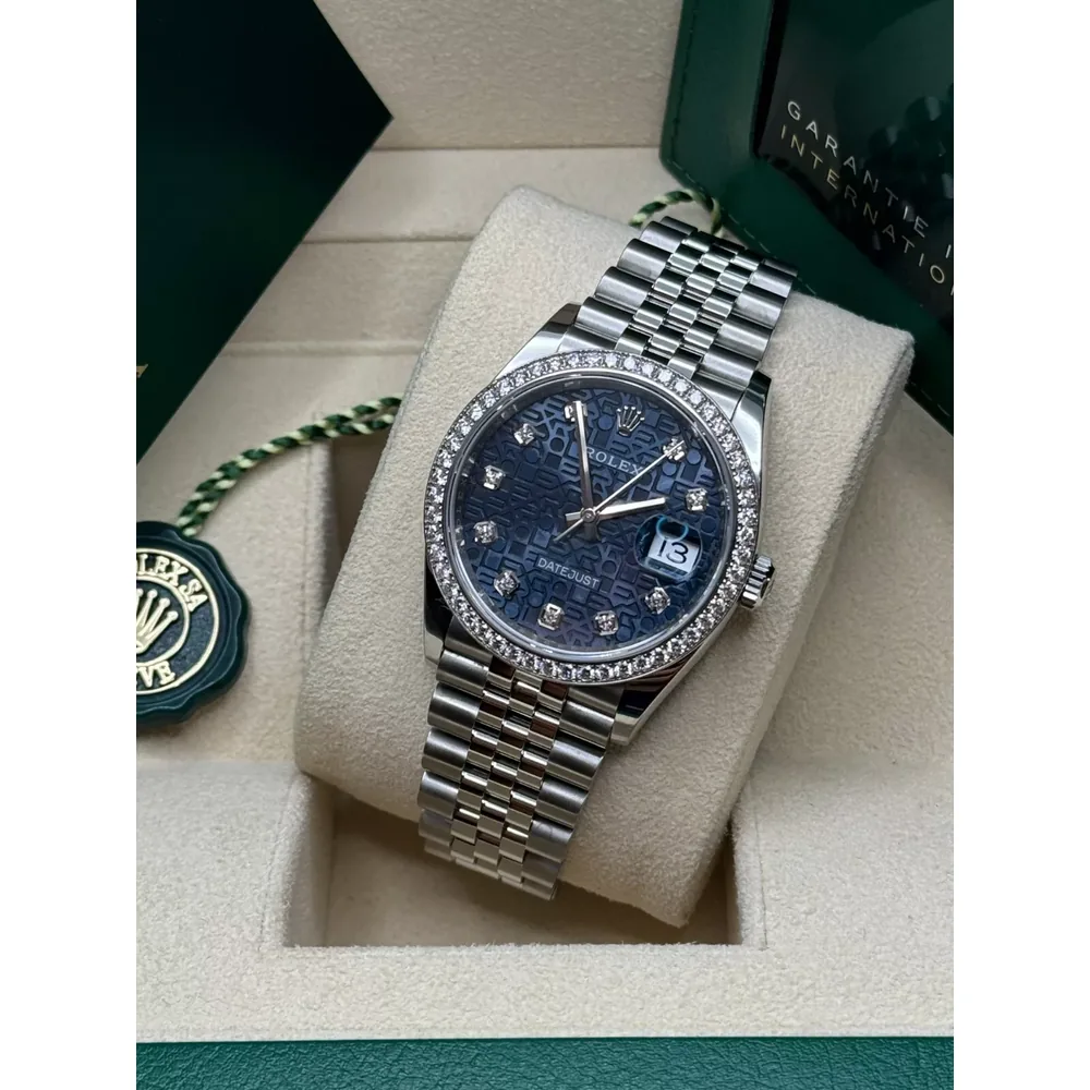 RLX Datejust 36mm 126284 Blue Jubilee Diamond Dial & Diamond Bezel, Stainless Steel Oyster Bracelet Watch