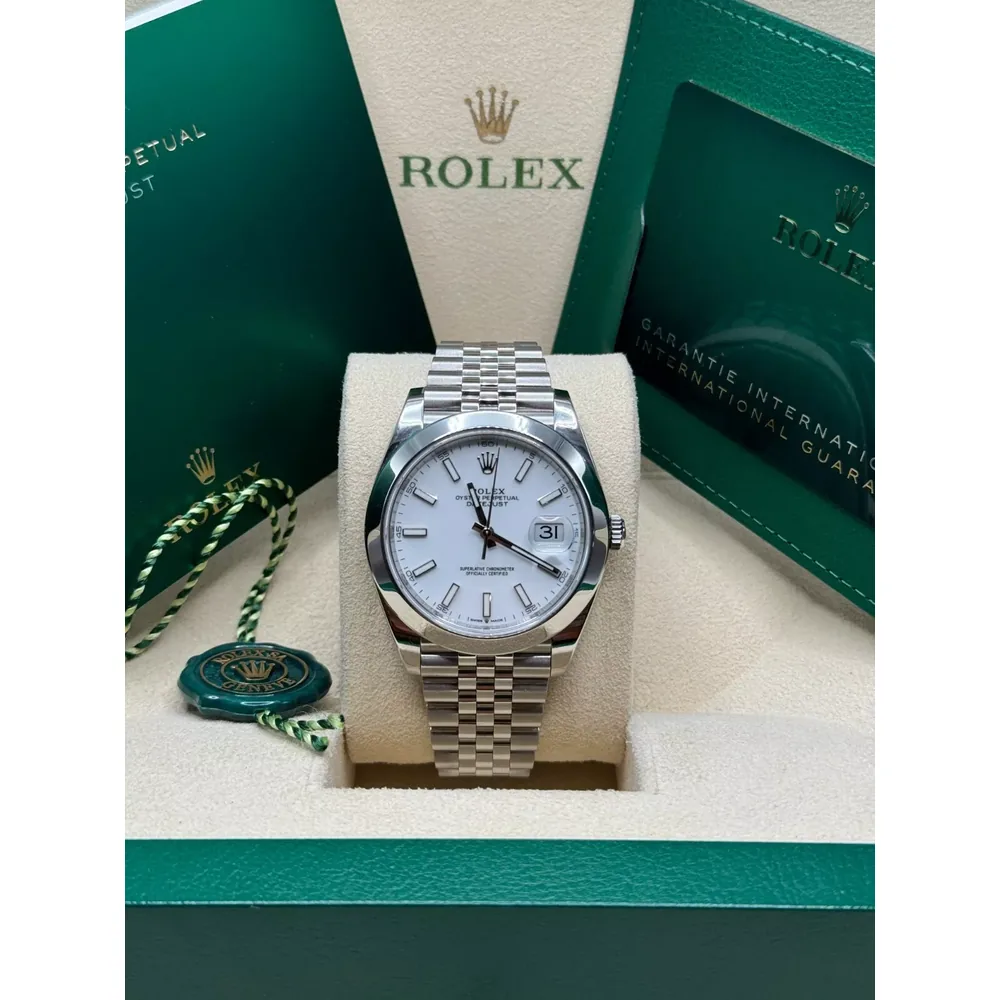 RLX Datejust 41mm 126300 White Index Oyster Stainless Steel Watch