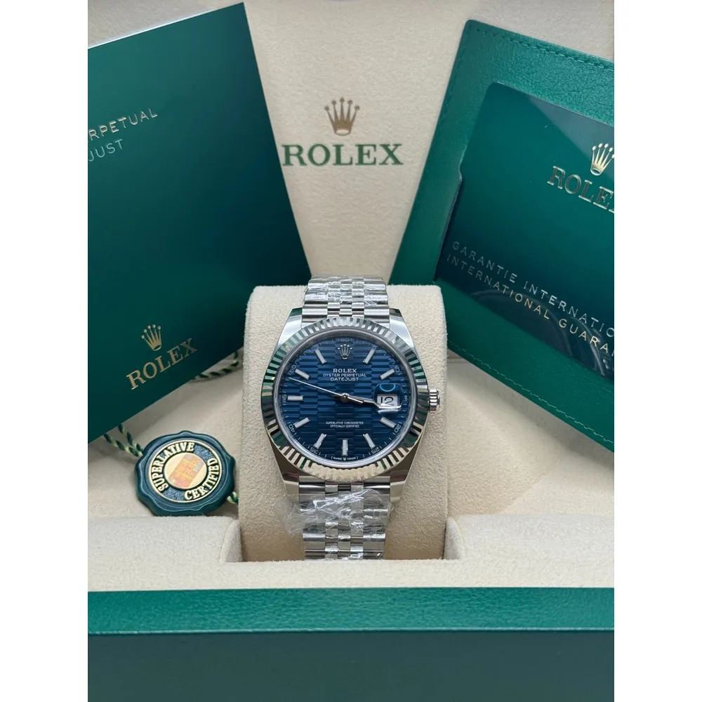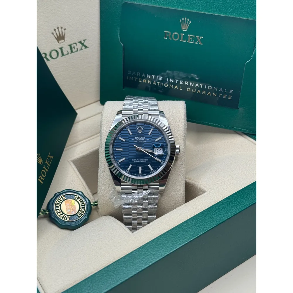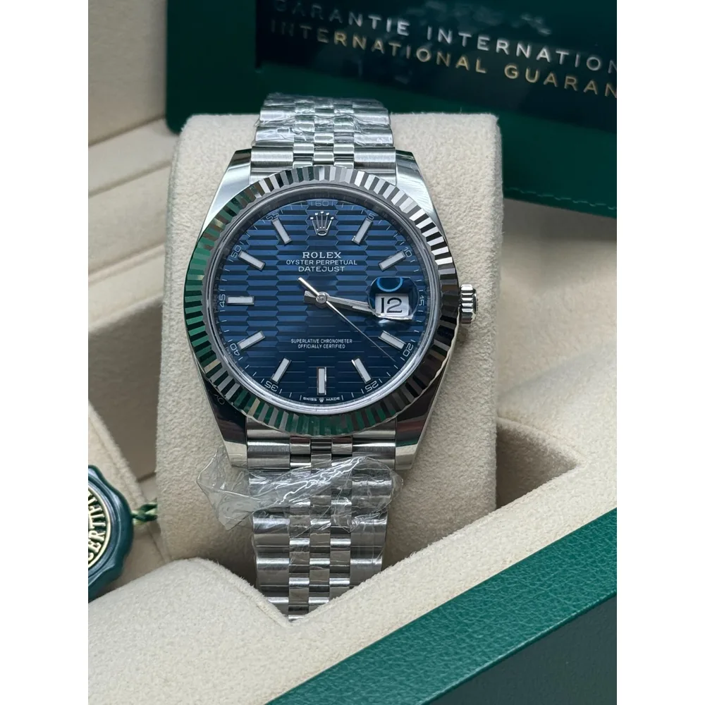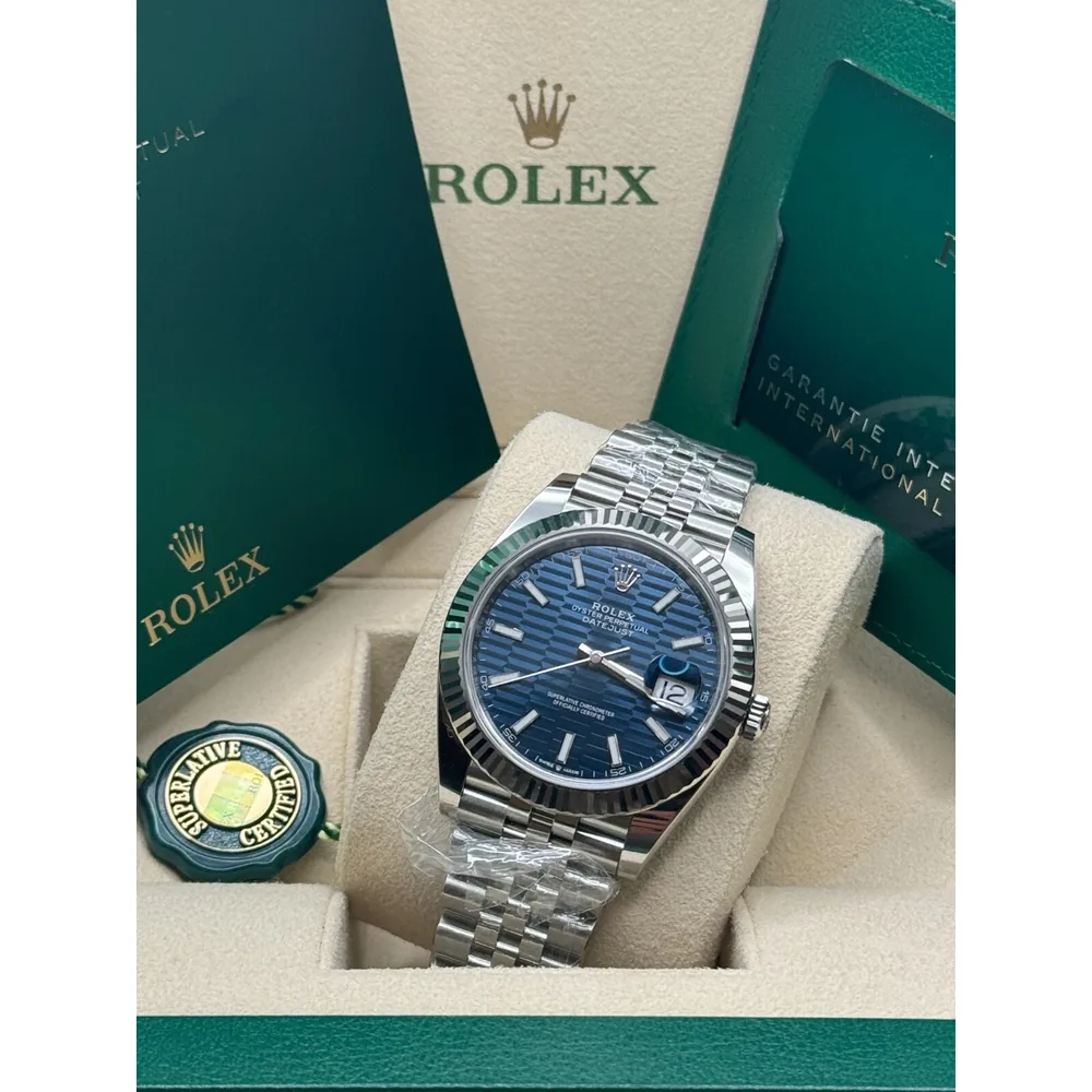 RLX Datejust 41mm Blue Fluted Motif Index Dial Jubilee Bracelet Watch – 126334