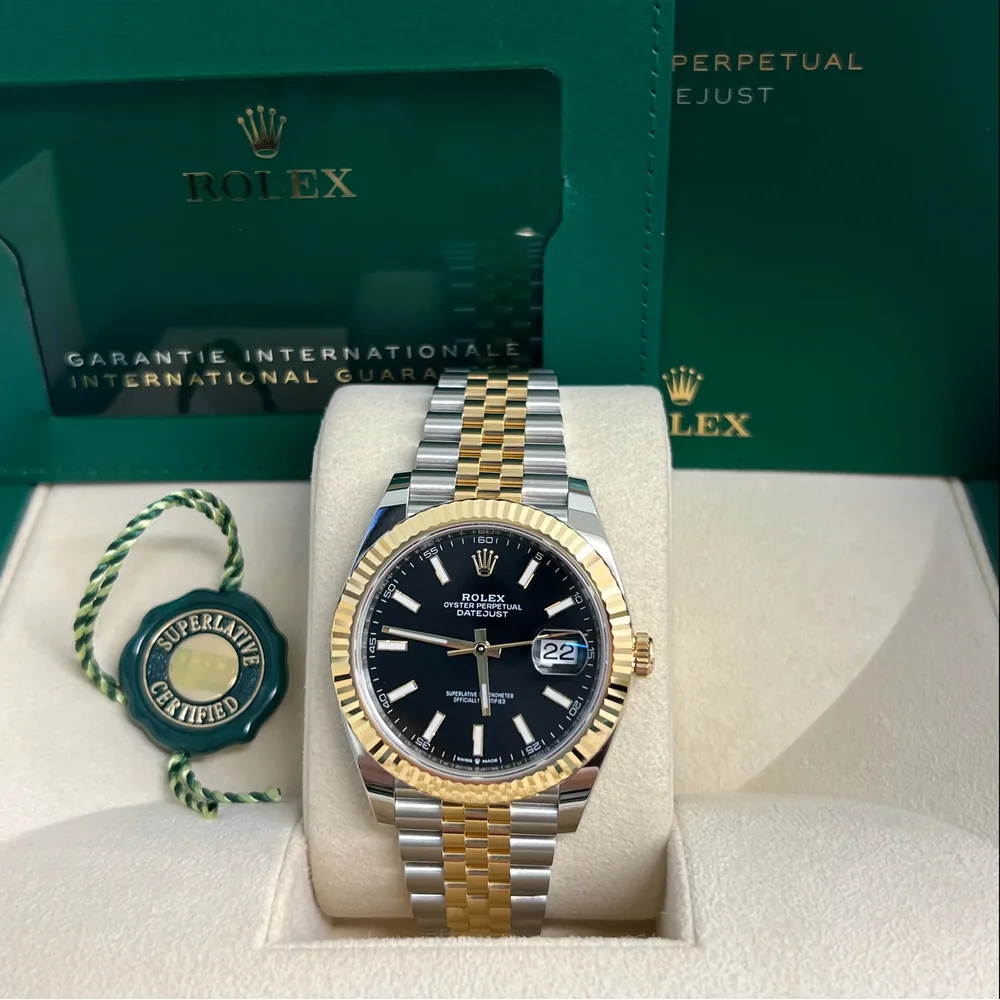 RLX Datejust 41mm Two-Tone Yellow Gold Fluted Bezel Black Index Dial Jubilee – 126333