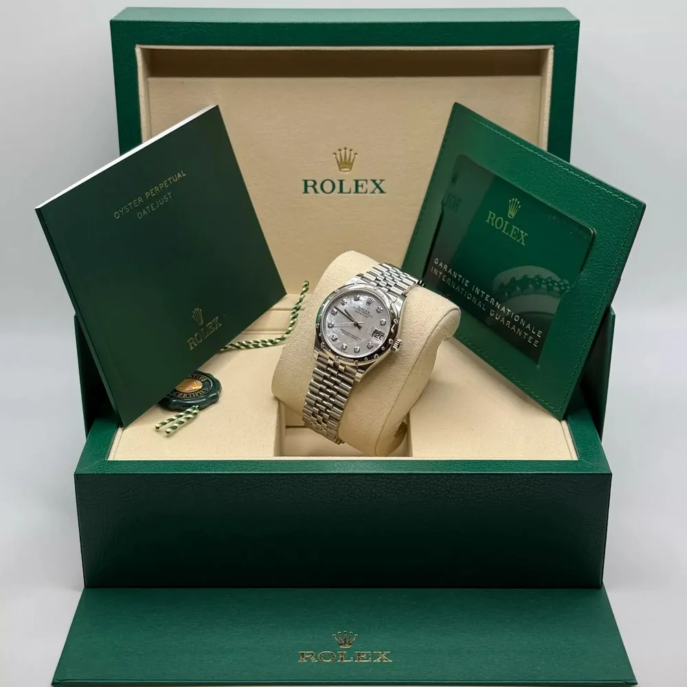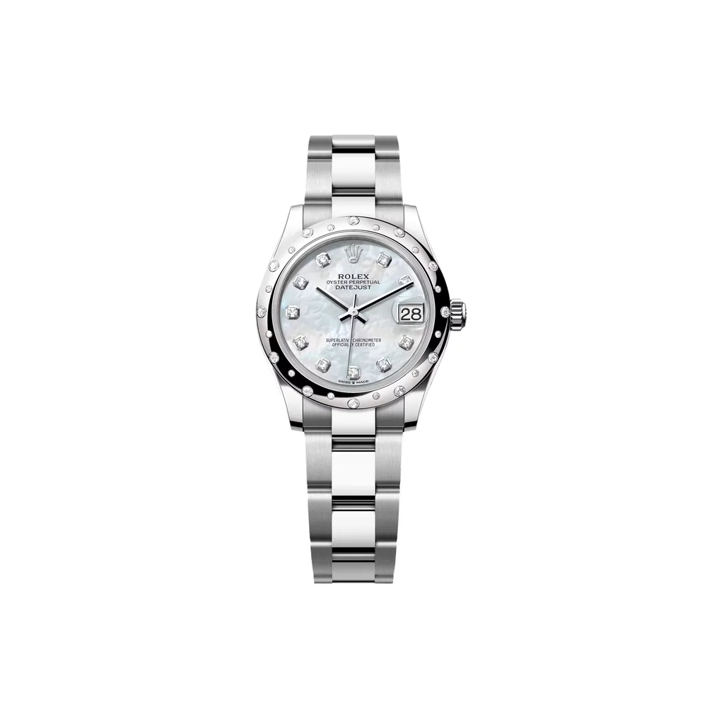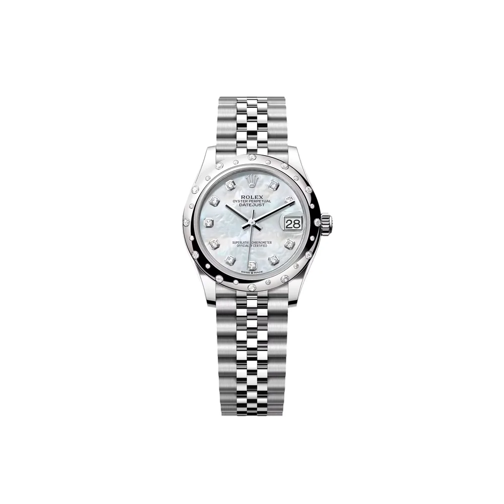 RLX Datejust m278344-0005/0006 Mother-of-Pearl Dial 31mm Domed Diamond Oyster Watch