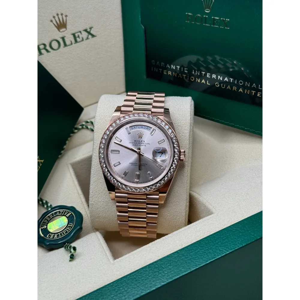 RLX Day-Date "President" 40mm Everose Gold Chocolate Index Dial - 228235 Price range: $569.00 through $998.00