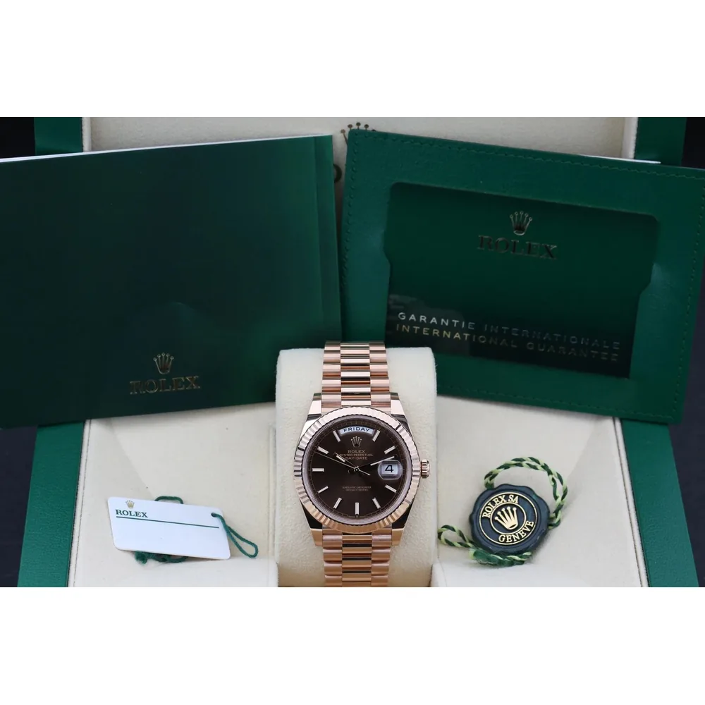 RLX Day-Date “President” 40mm Everose Gold Chocolate Index Dial – 228235