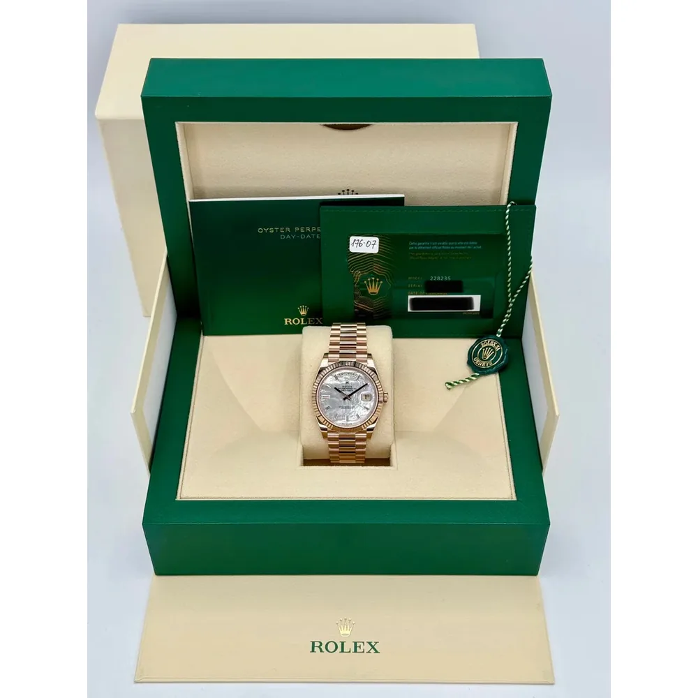 RLX Day-Date “President” 40mm Everose Gold Mother of Pearl Diamond Baguette Dial – 228235