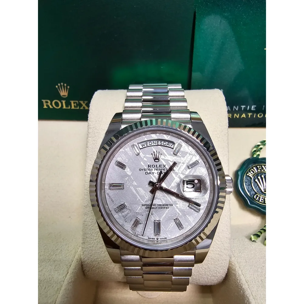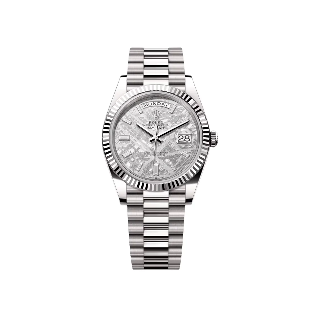 RLX Day-Date “President” 40mm White Gold Meteorite Diamond Baguette Dial – 228239