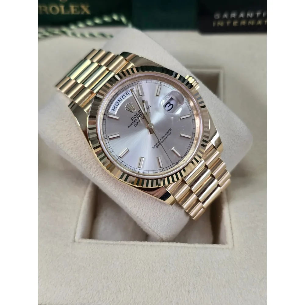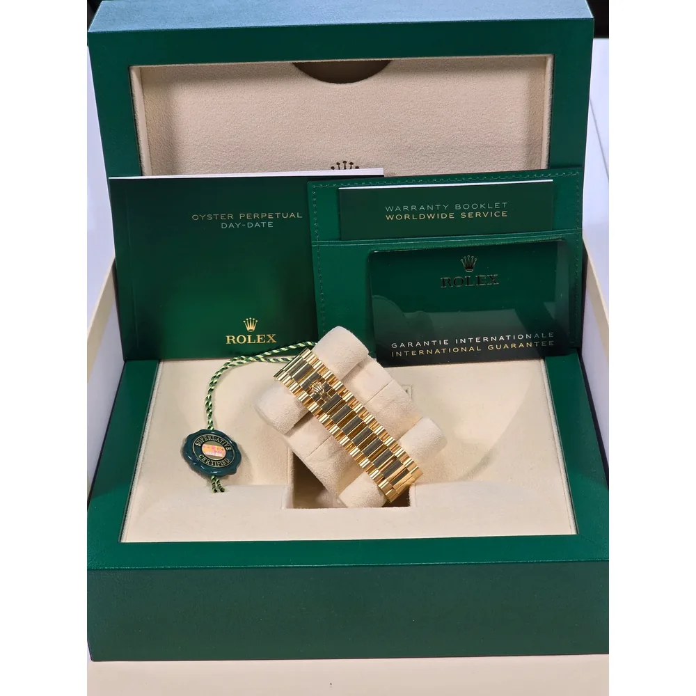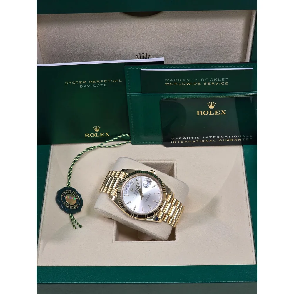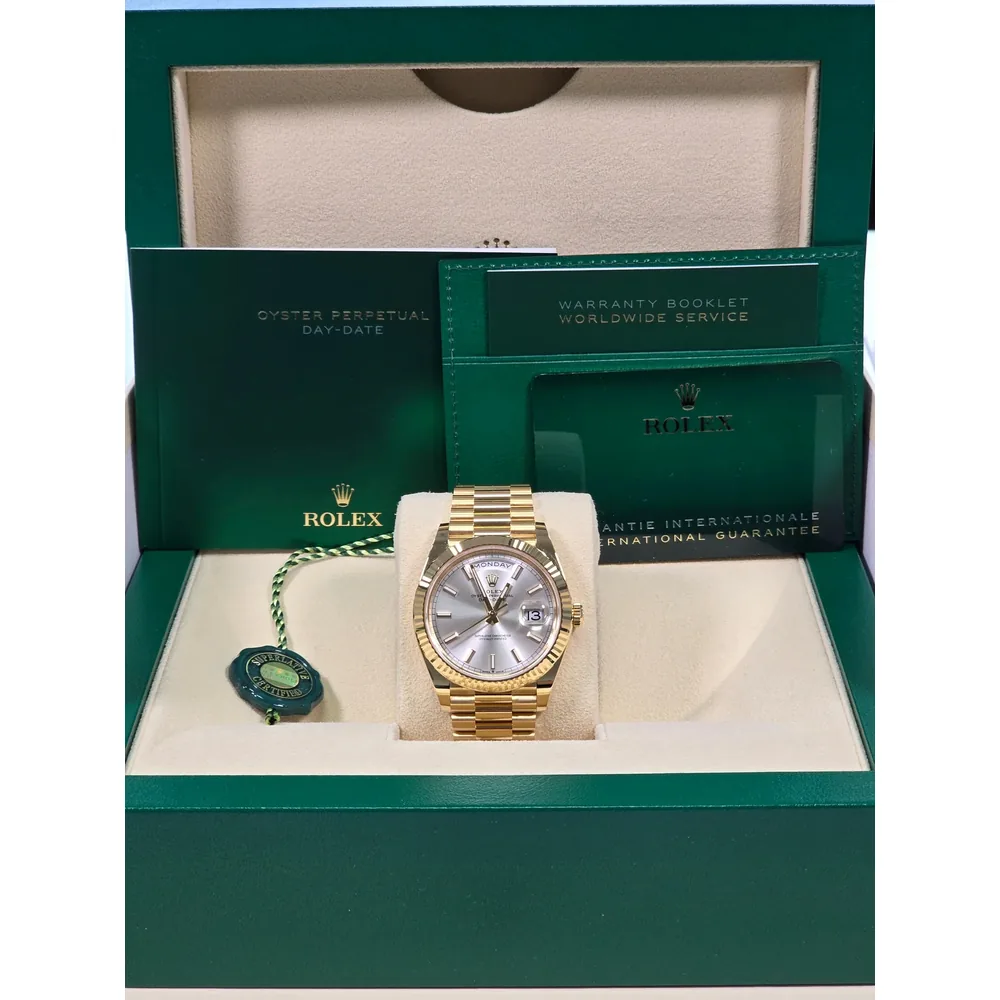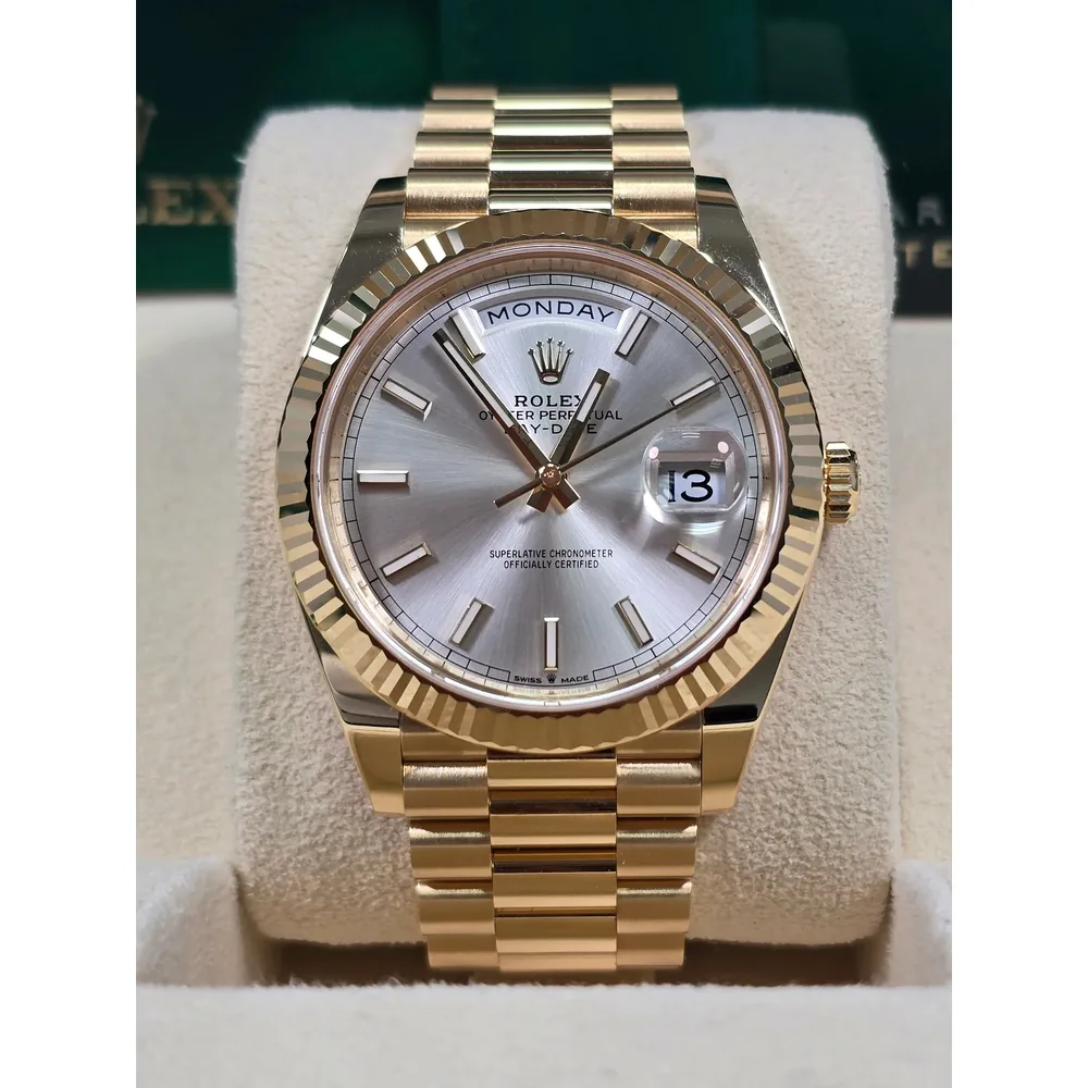 RLX Day-Date “President” 40mm Yellow Gold Silver Index Dial – 228238