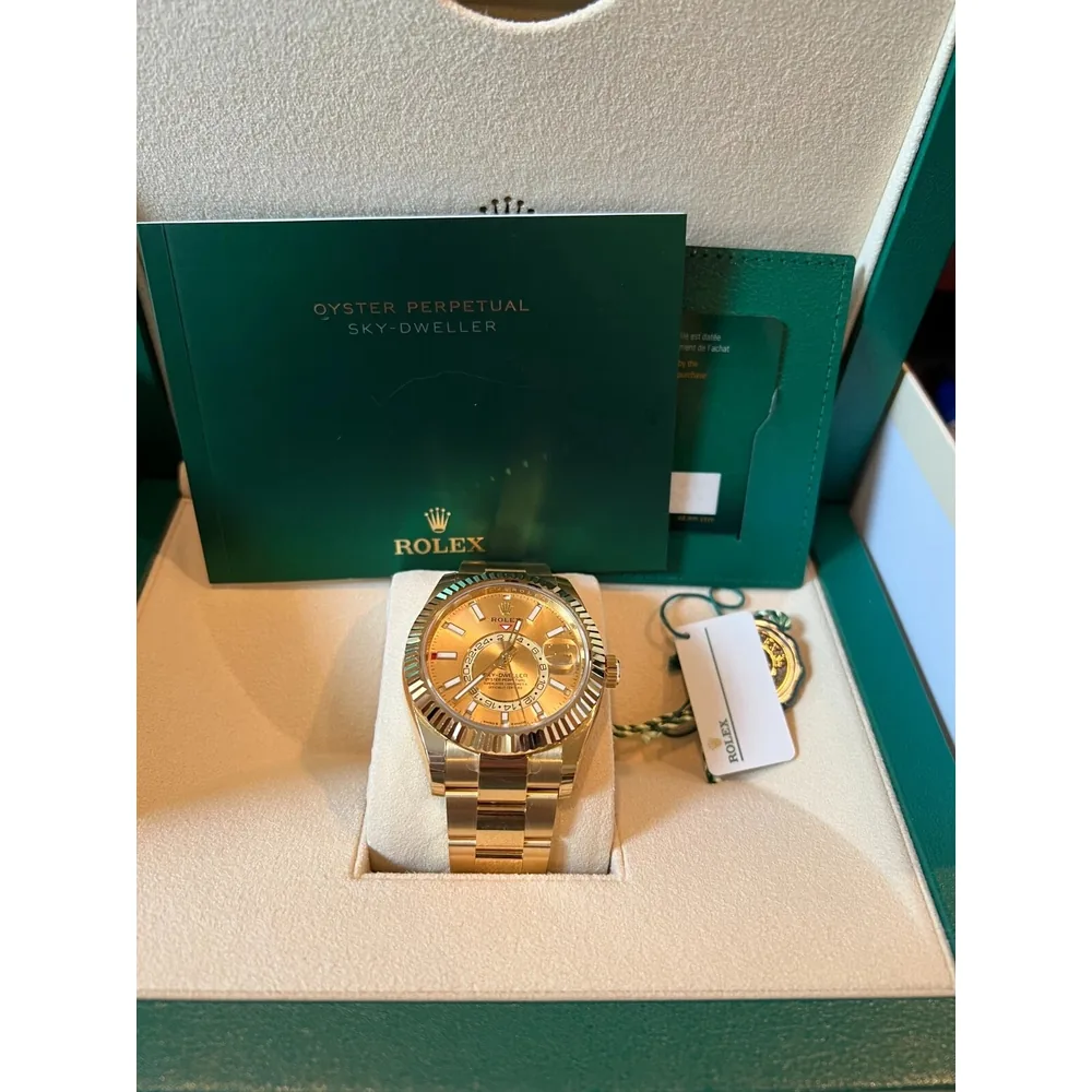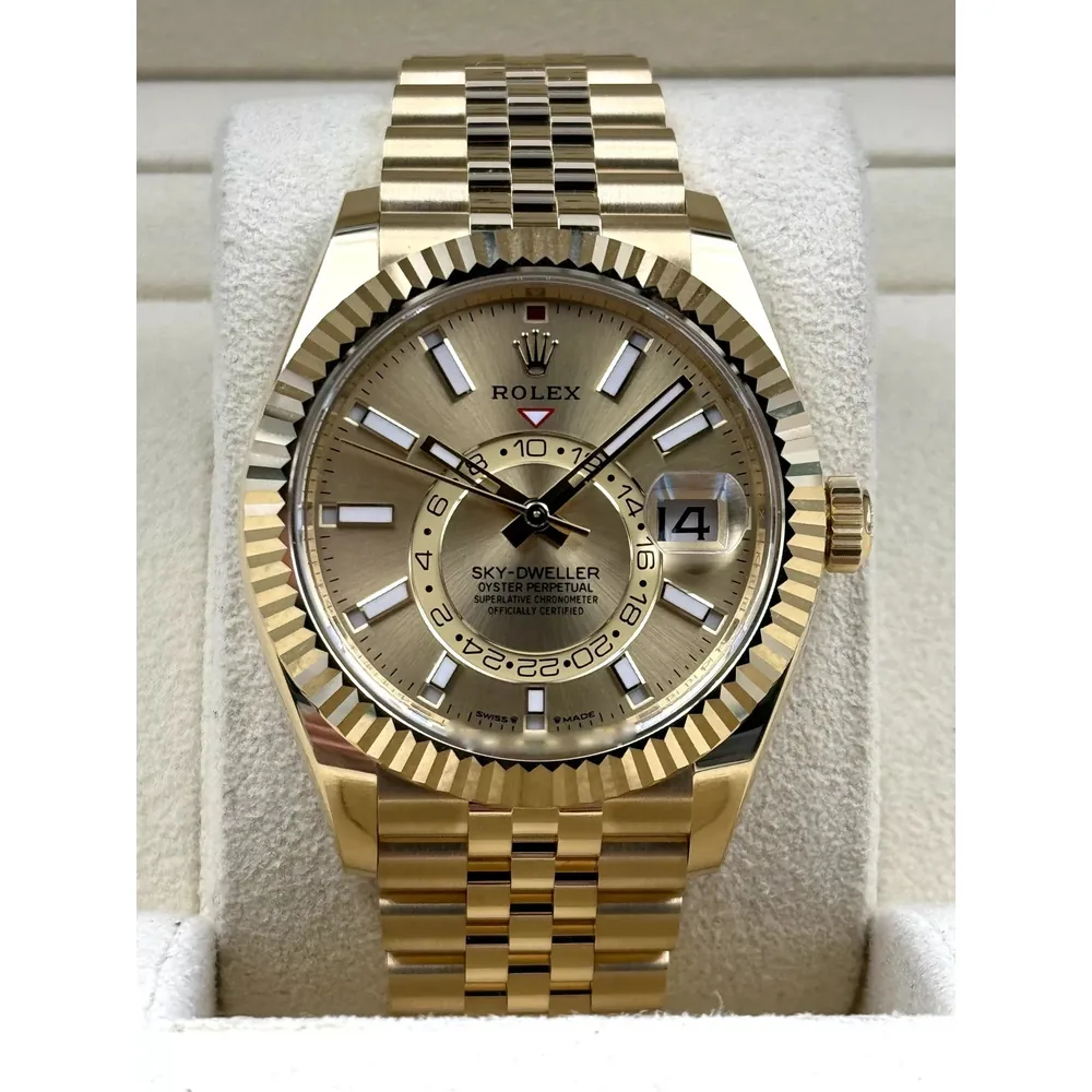 RLX Sky-Dweller 42mm 336938-0001/0004 Yellow Gold Champagne Dial Jubilee