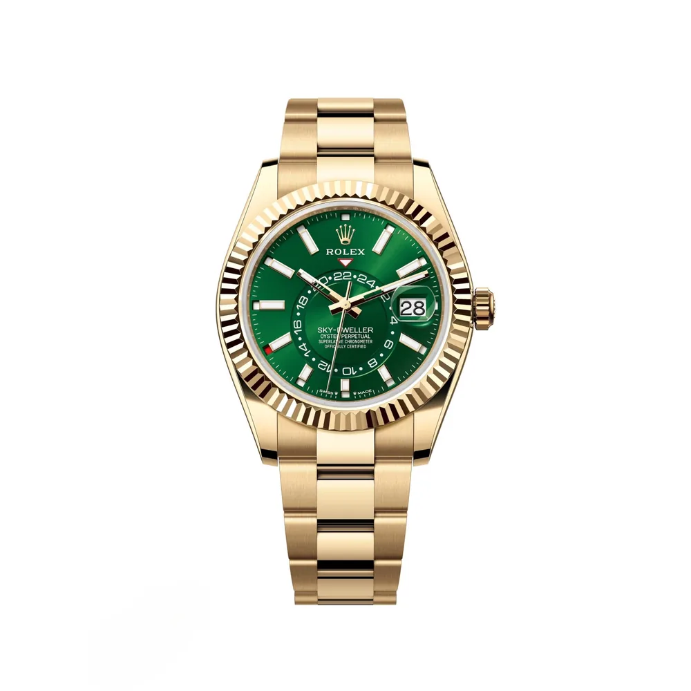 RLX Sky-Dweller 42mm 336938-0007/0008 Yellow Gold Bright Green Dial Jubilee