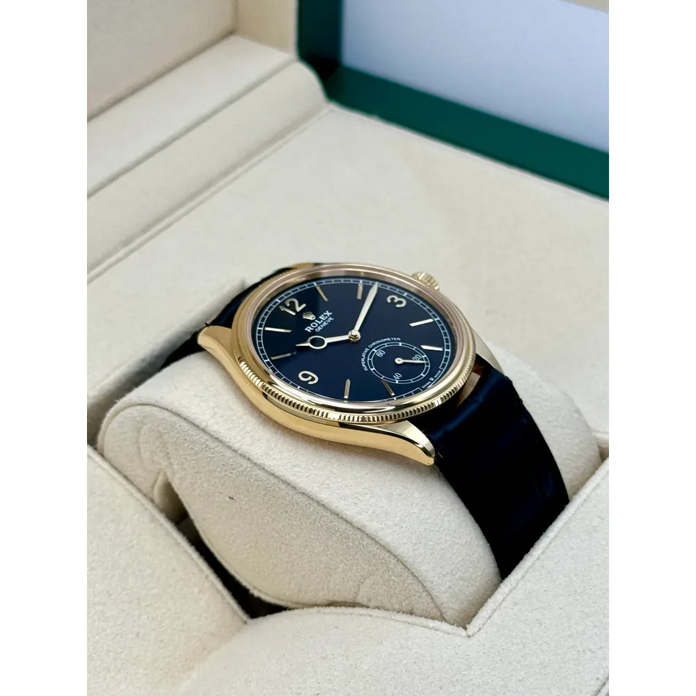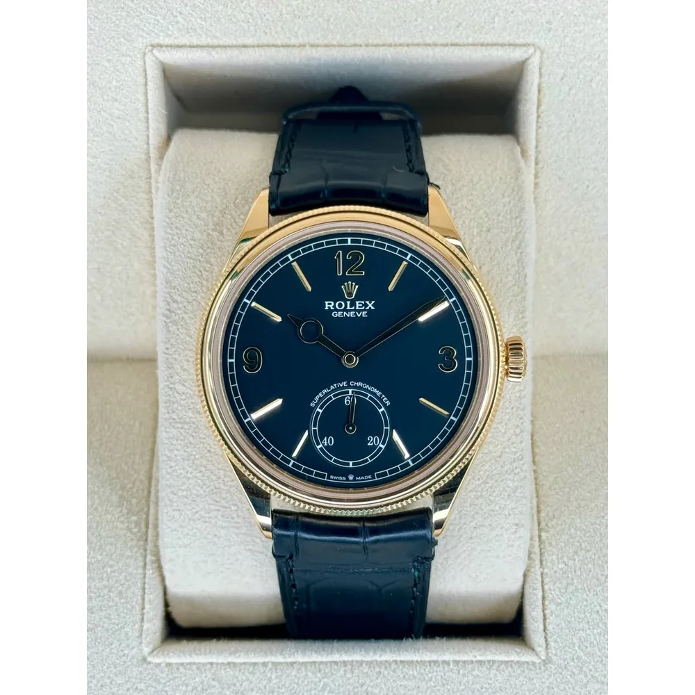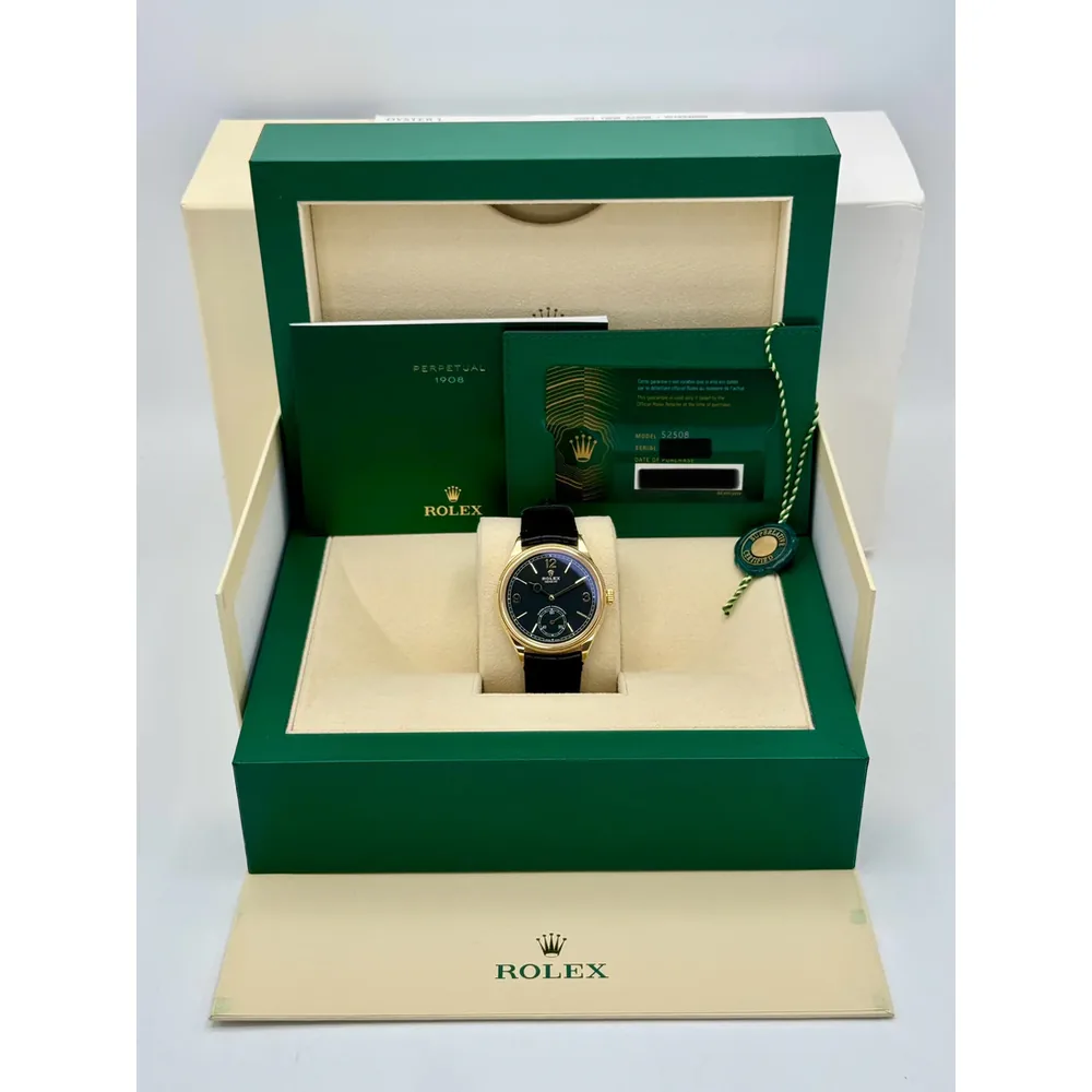 Rolex 1908 Yellow Gold Black Dial Black Alligator Strap – 52508-0002