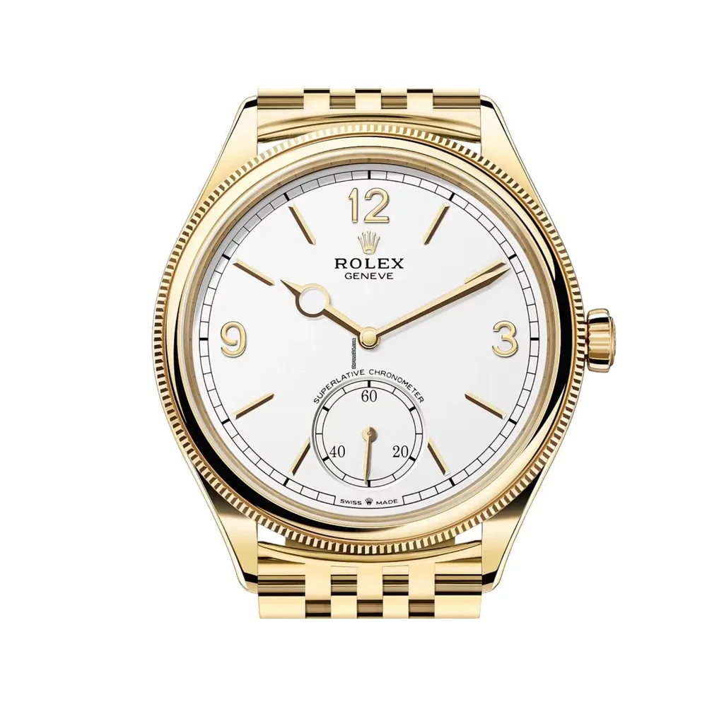 The Rolex 1908 52508 in 18k yellow gold with an intense white dial is a refined celebration of classical watchmaking elevated through Rolex’s modern lens. The 39mm slim Oyster case is sculpted in polished yellow gold, featuring a delicately fluted bezel and domed sapphire crystal that evoke the elegance of early 20th-century Rolex models while embracing contemporary proportions.
