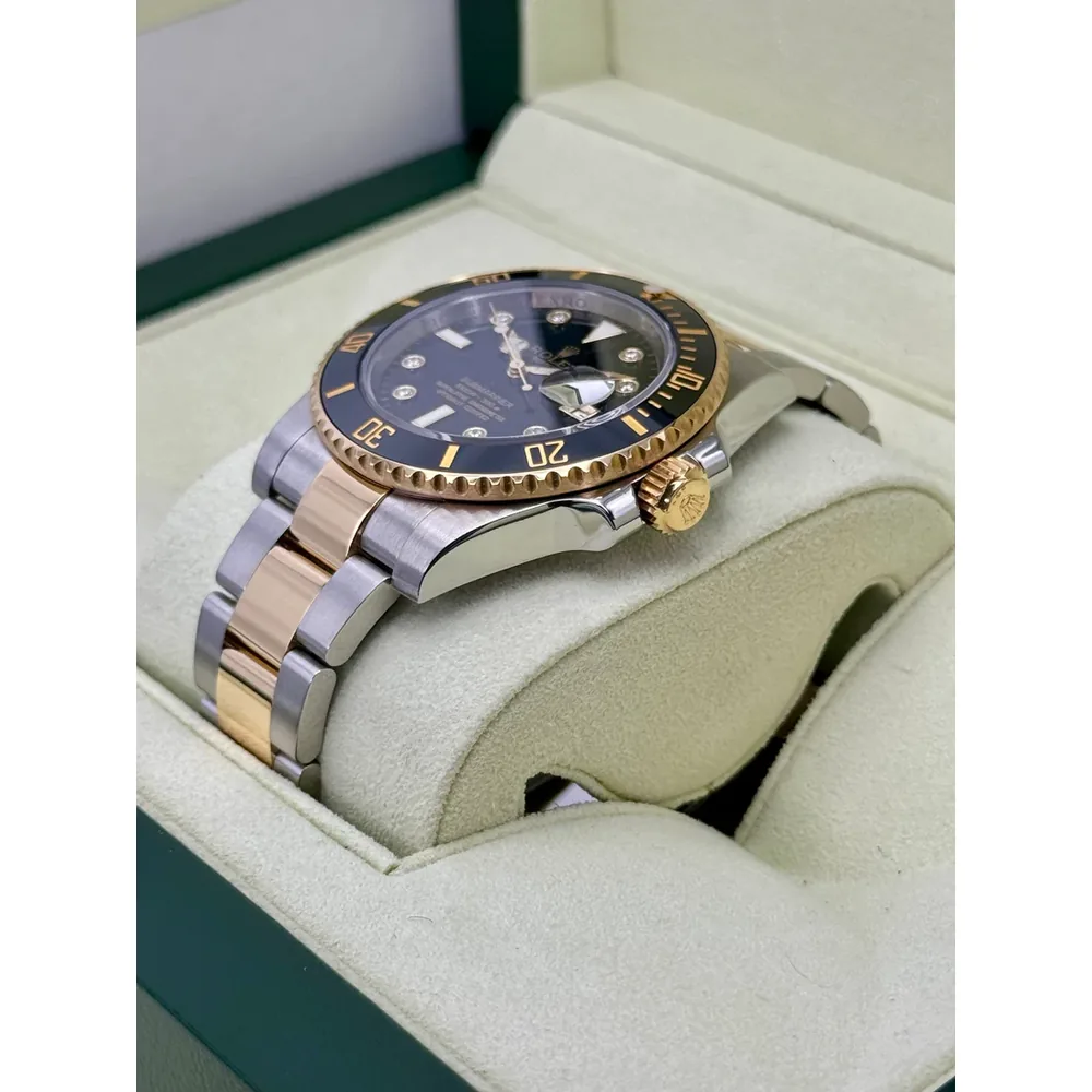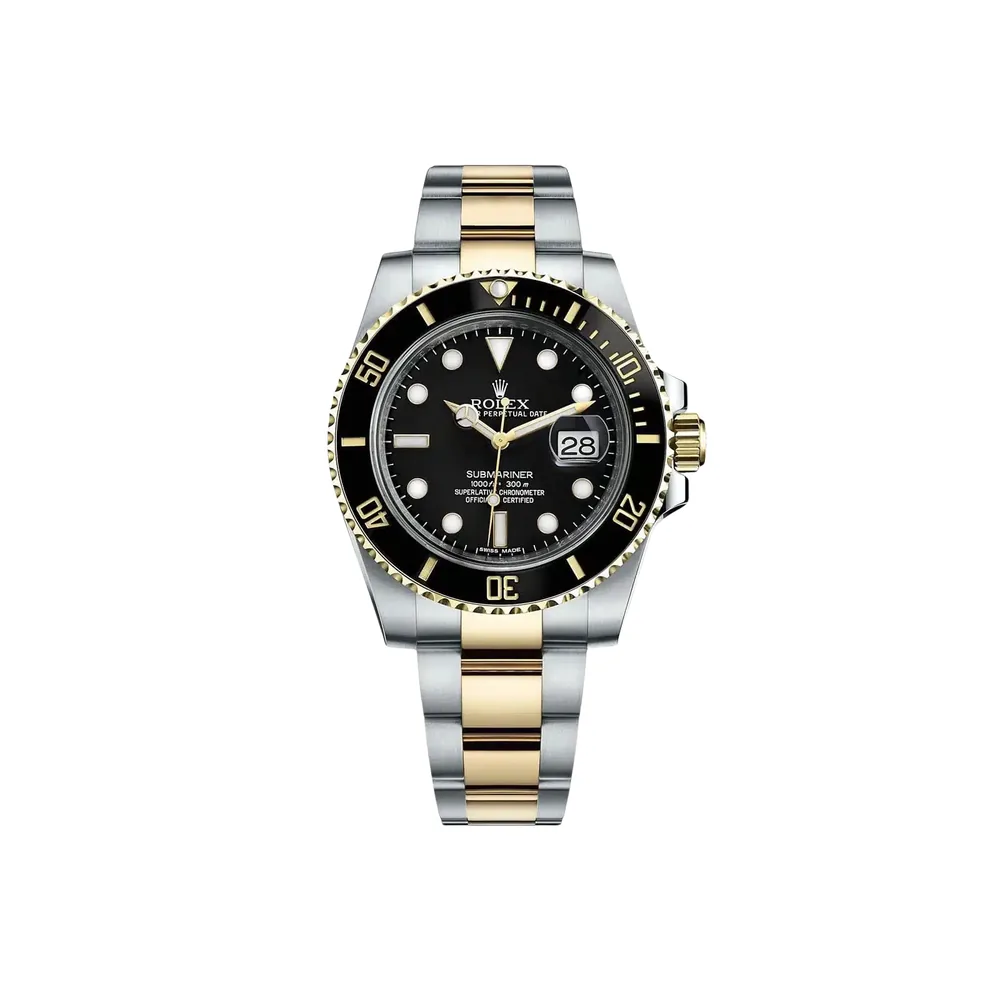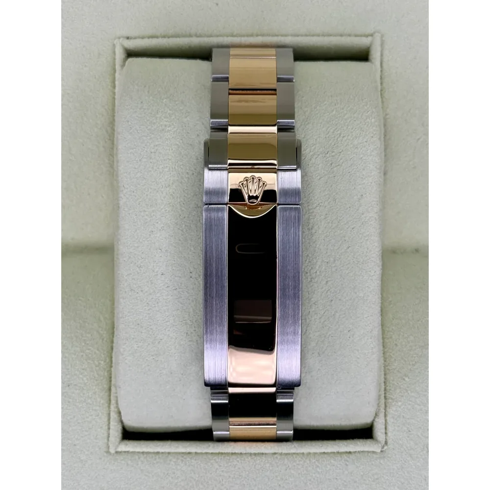 | BRACELET | – Oyster design, two tone flat three-piece links – Made with Solid 904L Grade Stainless Steel with DLC scratch-protection coating and 18k Yellow Gold plating on the middle links – Solid threaded screws, so you can easily remove bracelet links with just a small screwdriver – Folding OysterLock Safety Clasp with Rolex Glidelock extension system, exactly as Original |